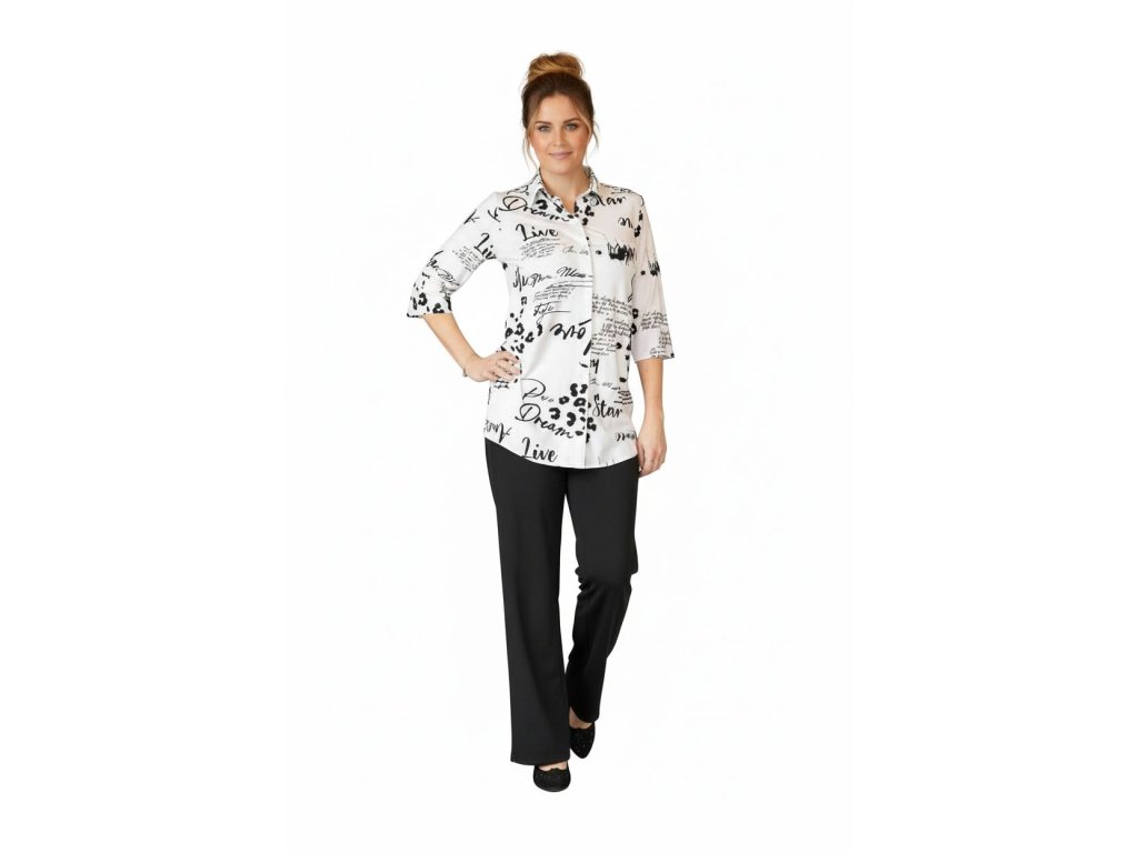 Krásná košile od firmy Sabatti s 3/4 rukávem. Látka je bílá (neprůhledná) s černým písmem.