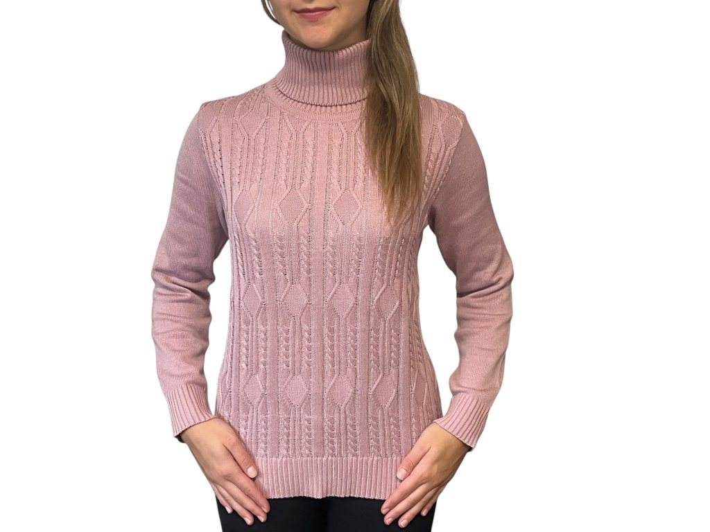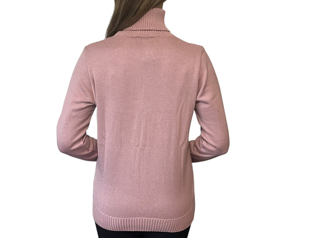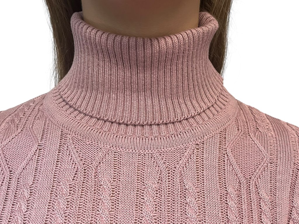 Krásný rolák od firmy Ria móda, který perfektně pruží a zároveň nestíská u krku. Látka je starorůžová s bordurou.