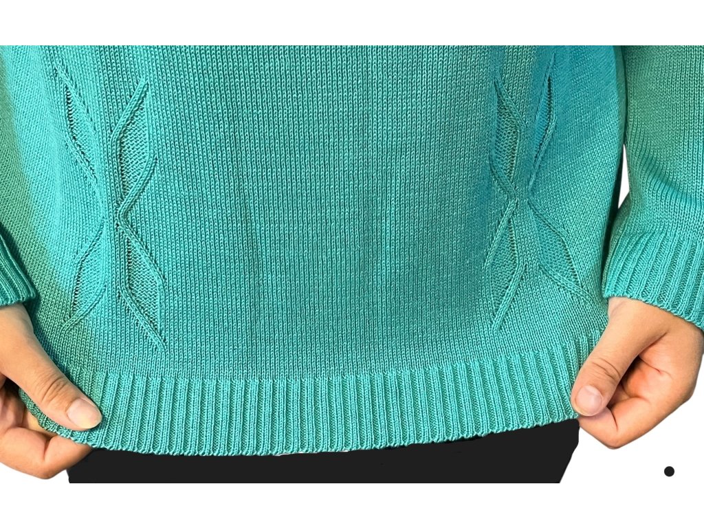 Svetr od firmy Ria móda s dlouhými rukávy. Úžasný materiál bavlna a akryl v krásné zelené barvě se vzorem.