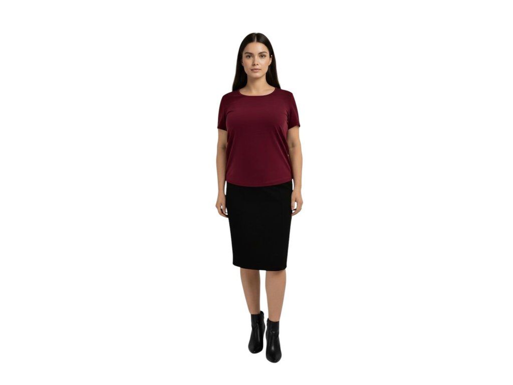 Letní halenka od firmy Kepa style s krátkým rukávem. Látka je vínová. Spodní lem je do gumičky, díky kterému se cítíte skvěle.