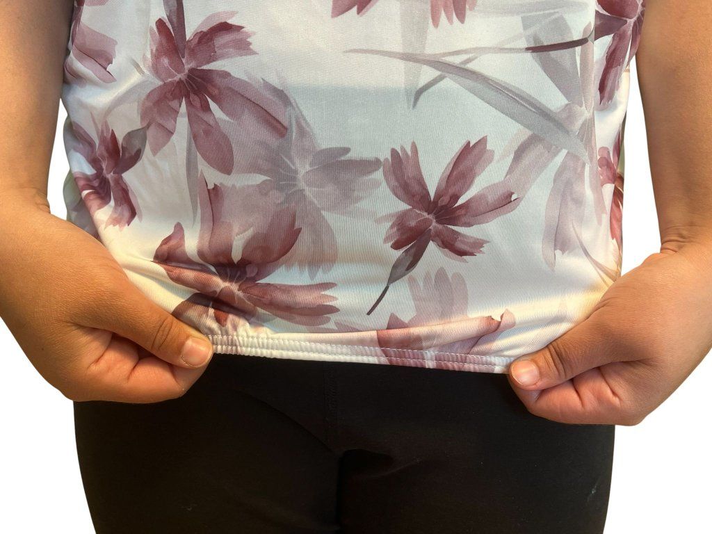 Halenka Pratto béžová s růžovými květy do gumičky (střih netopýr)