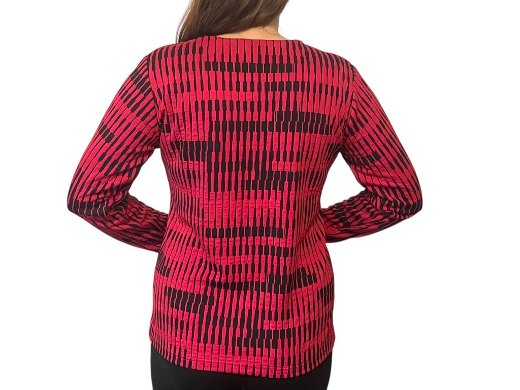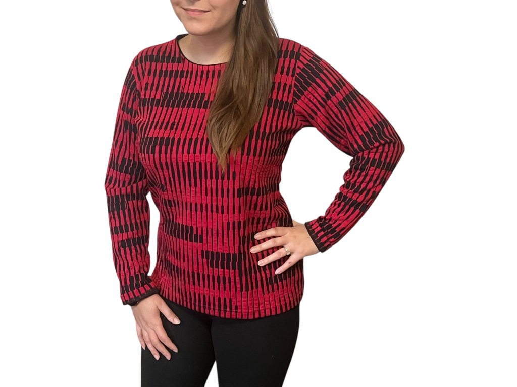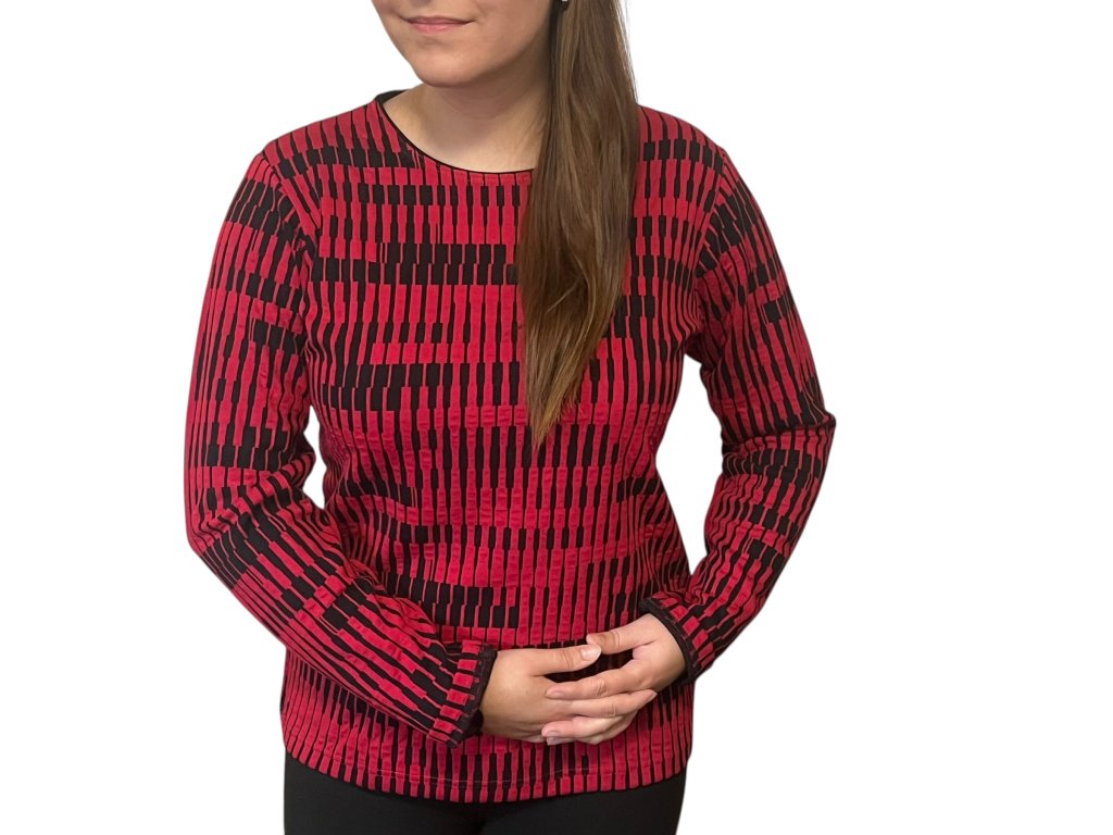 Teplejší halenka od firmy Pratto s dlouhým rukávem. Látka je černo-červená.