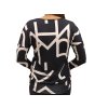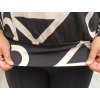 Halenka od firmy Elain s dlouhým rukávem. Látka je černá doplněná béžovým vzorem. Halenka je ve stylu netopýr (volné přes prsa a dole do lemu).