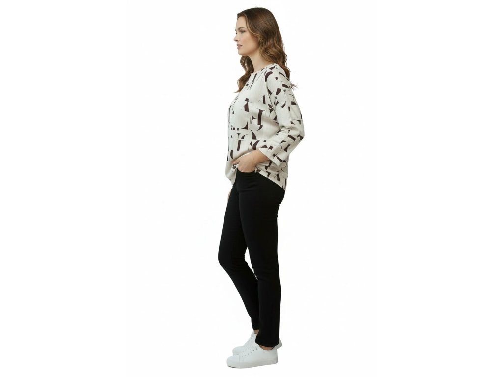 Elegantní halenka od firmy Kepa style v netopýřím střihu ( volné přes prsa a spodní lem do gumičky). Halenka je béžová s vínovým vzorem.