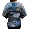 Halenka od firmy Pratto s 3/4 rukávem. Látka je modrá s černým vzorem. Halenka je ve stylu netopýr (spodní lem do gumičky a široké rukávy).