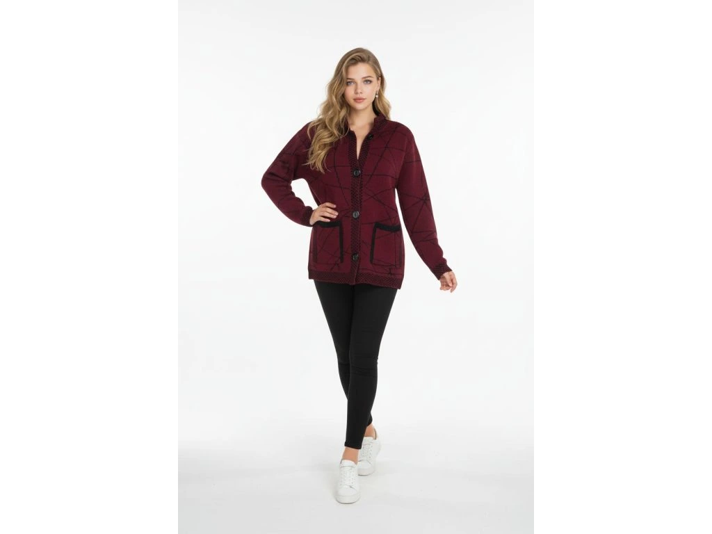 Kabát Ria móda vínový na knoflíky