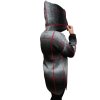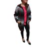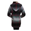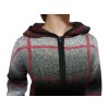 Dámský pletený kabát na zip s kapucí a kapsami od slovenské firmy Ria móda v kombinaci barev šedo-černé doplněné červeným pruhem.