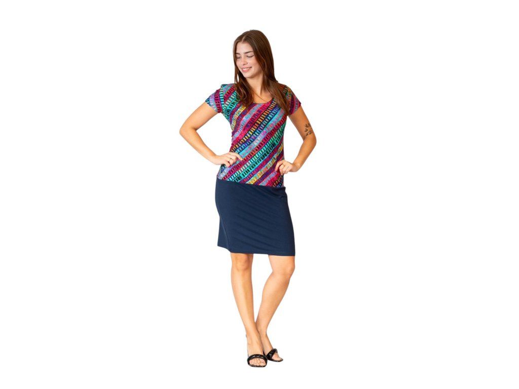 Šaty Sabatti barevné s tmavě modrou sukní