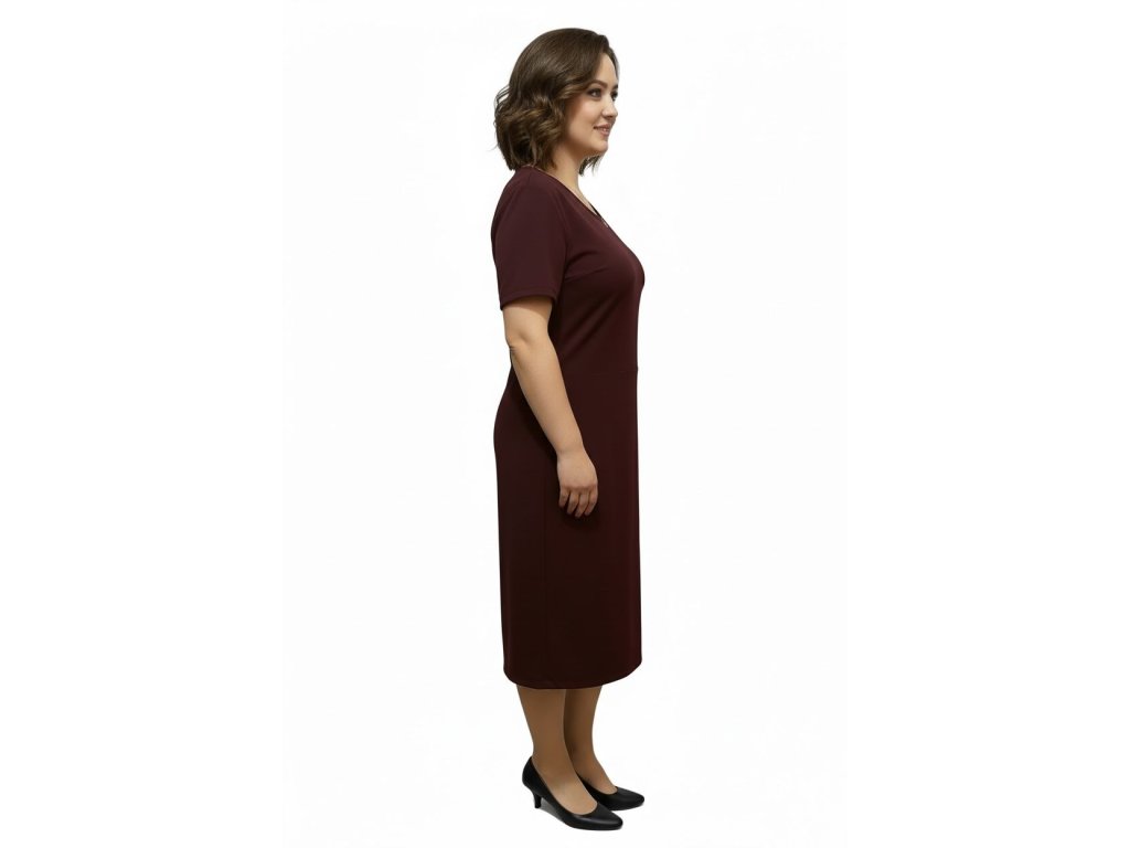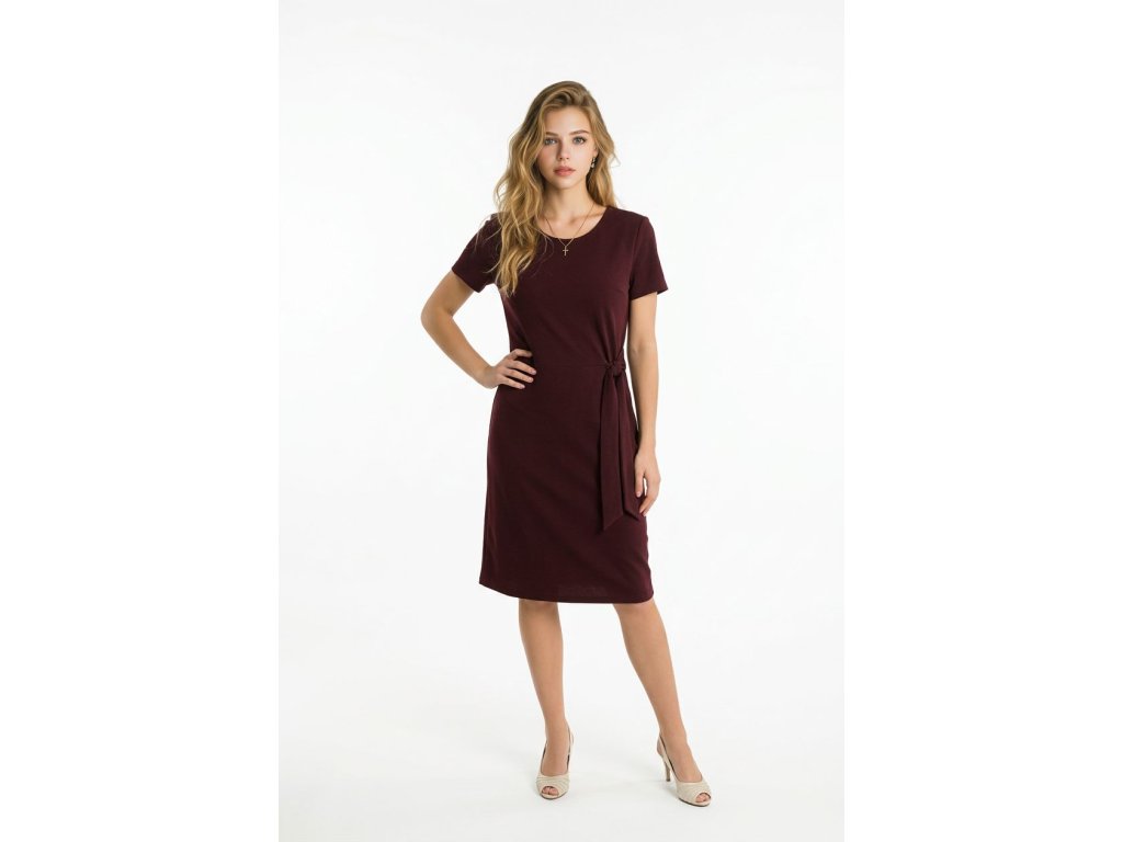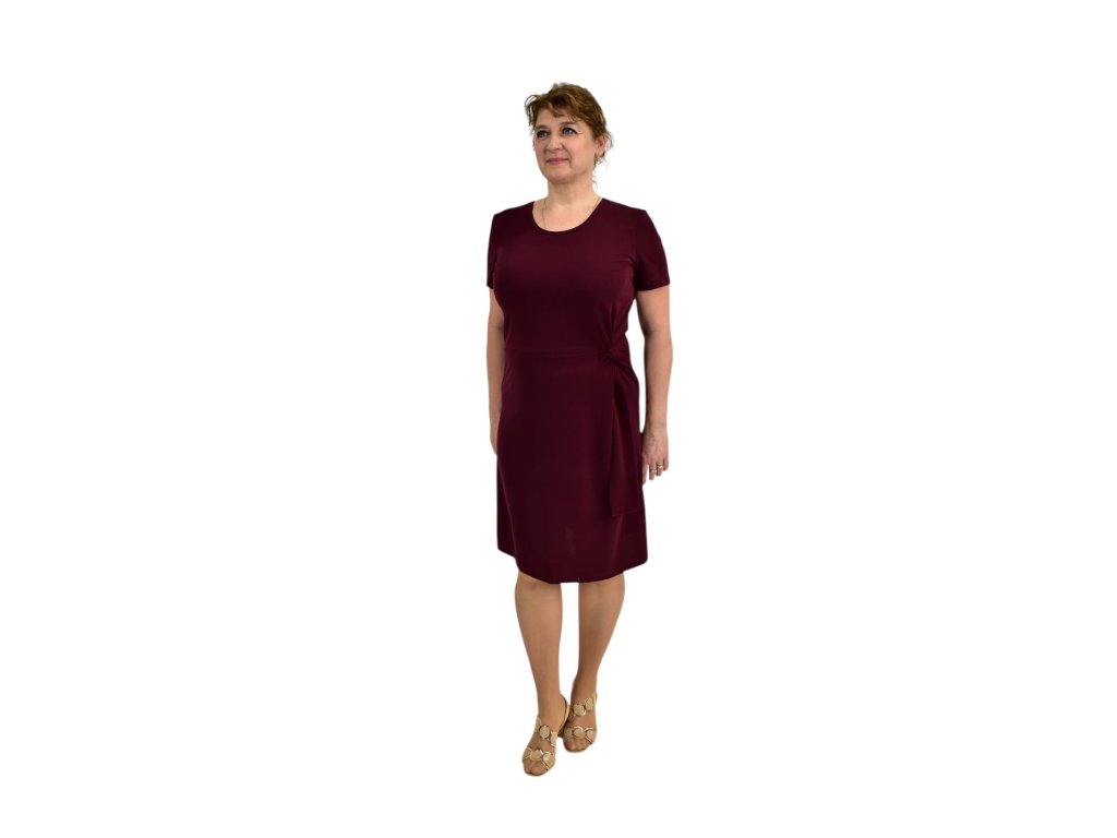 Elegantní šaty od firmy Kepa style s krátkým rukávem. Látka je vínová. Šaty mají uzlík na boku, díky kterému se cítíte skvěle a dodá na eleganci.