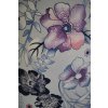 Šaty od firmy Ina s krátkým rukávem. Látka je světle modrá s fialovými květy. Dekolt je přestřižen.