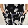 Dámské šaty od firmy Pratto s 3/4 rukávem a kapsami. Látka je černá doplněná bílými a šedými vzory.