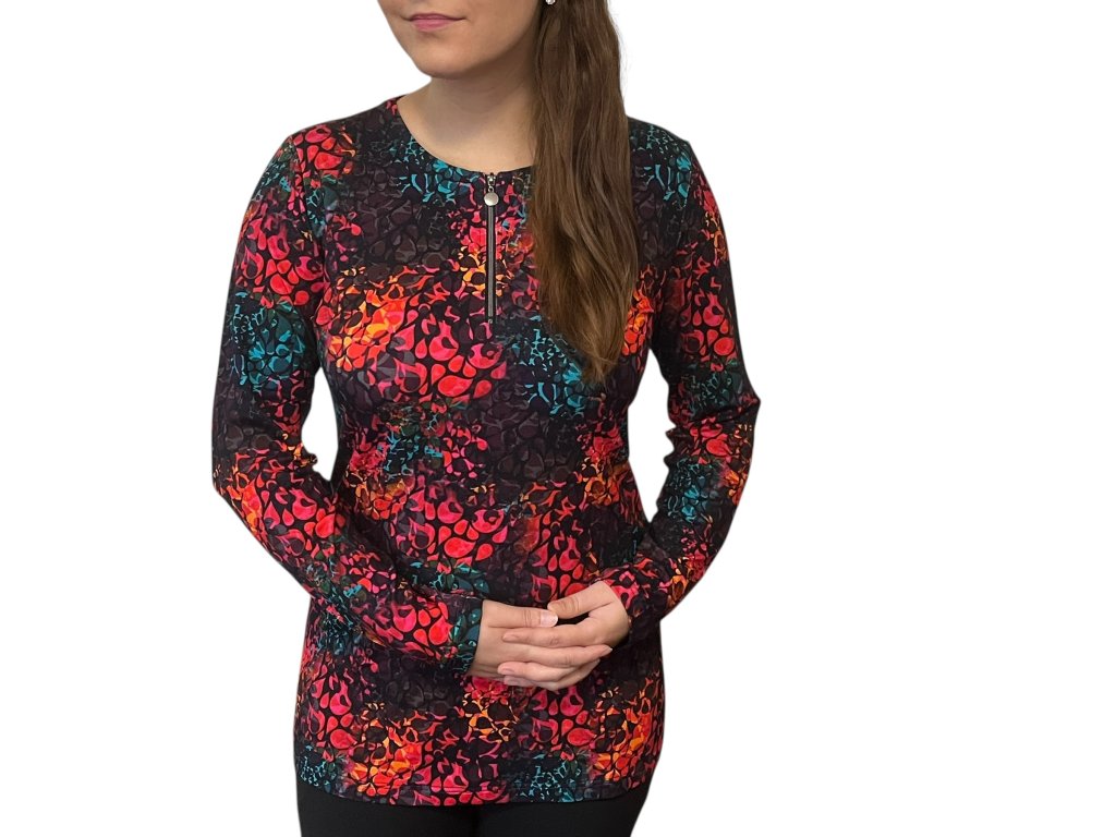 Tunika od firmy Sabatti s dlouhým rukávem. Látka je barevná. Dekolt je doplněn zipem, který lze rozepnout.
